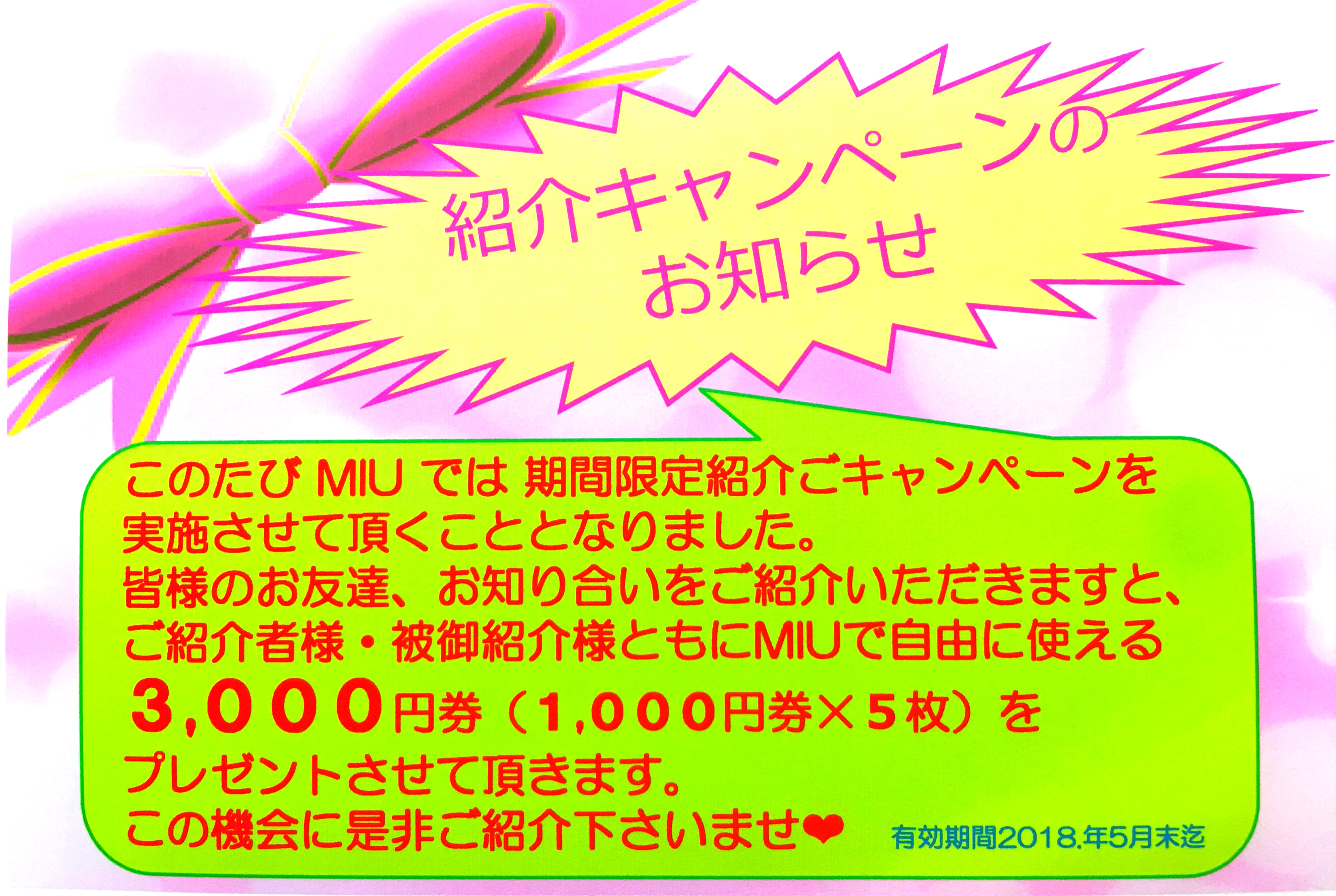 期間限定 ご紹介キャンペーンのお知らせです♪ - 柏の美容室・美容院 MIU | 柏の美容室・美容院 MIU